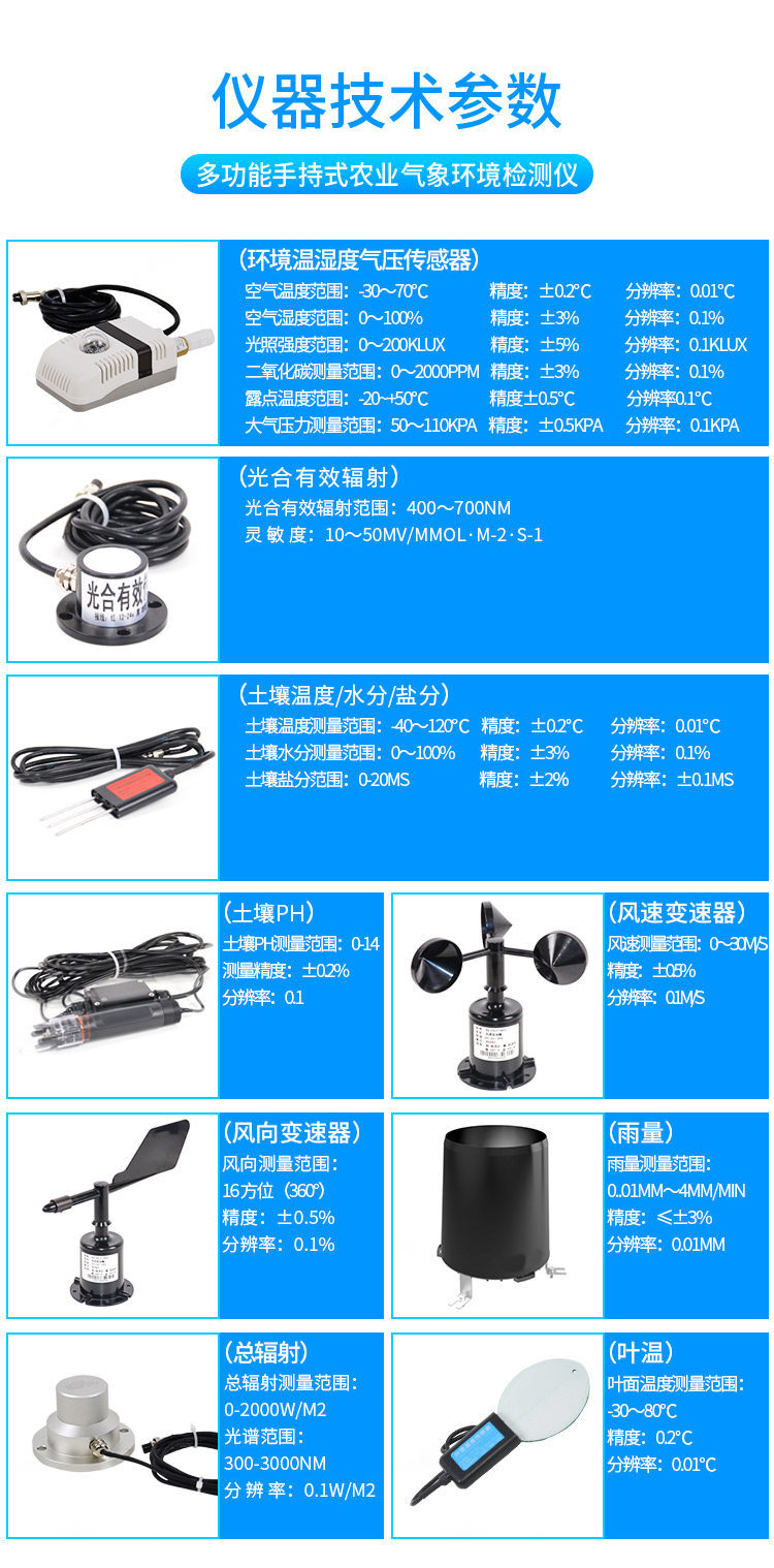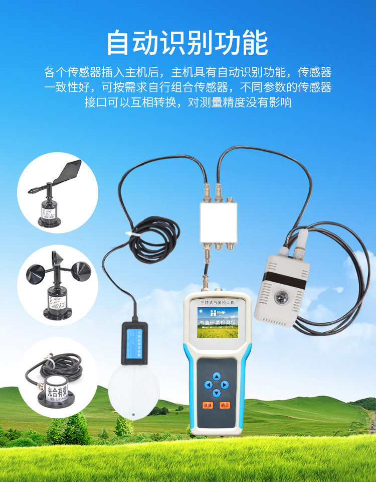 氣象觀測(cè)儀器是我們專門針對(duì)農(nóng)田、草場(chǎng)局部小尺度環(huán)境設(shè)計(jì)的,對(duì)與植被和農(nóng)作物生長(zhǎng)密切相關(guān)的土壤、水氣等環(huán)境參數(shù)監(jiān)測(cè)的農(nóng)田小氣候站。它主要觀測(cè)與農(nóng)業(yè)相關(guān)的空氣溫度、空氣濕度、光照強(qiáng)度、二氧化碳濃度、露點(diǎn)溫度、光合有效輻射等5個(gè)環(huán)境參數(shù)氣象要素,為農(nóng)業(yè)科研、農(nóng)業(yè)生產(chǎn)等提供良好的支持。